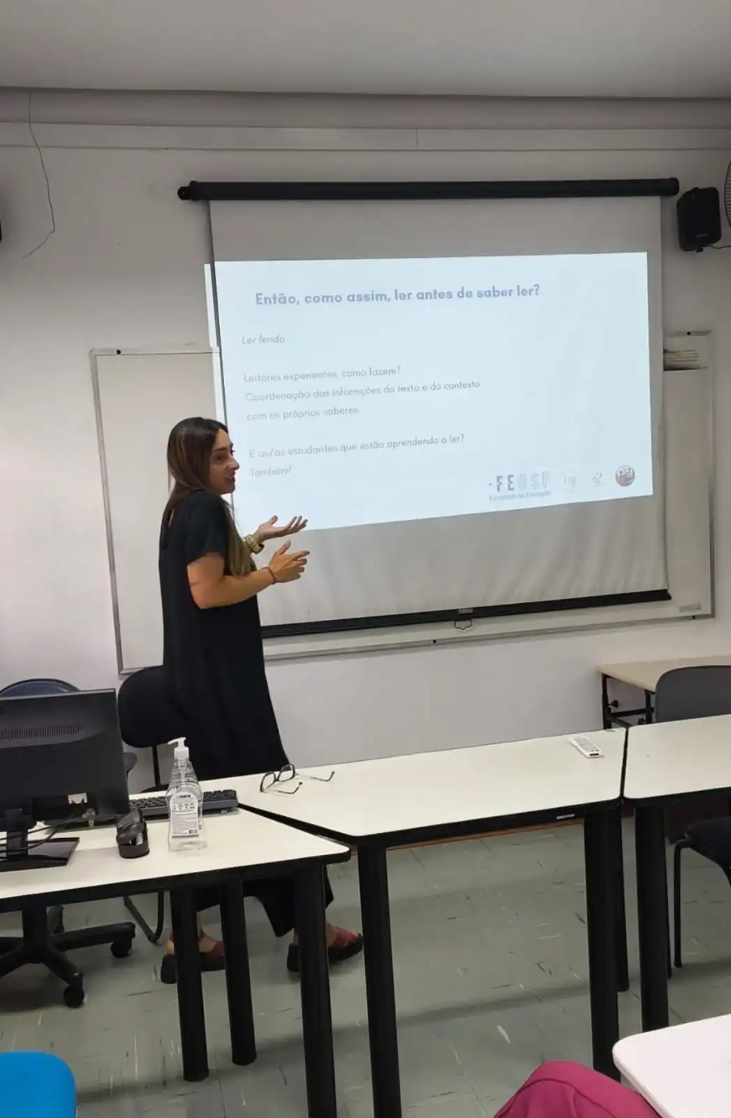 Apresentei, em parceria com a Giulianny Russo, o trabalho “Ler antes de saber ler: situações de leitura pela criança no percurso formativo de 1º e 2º ano do Compromisso Nacional Criança Alfabetizada”, compartilhando estudos e contribuições sobre a leitura como construção de sentidos.