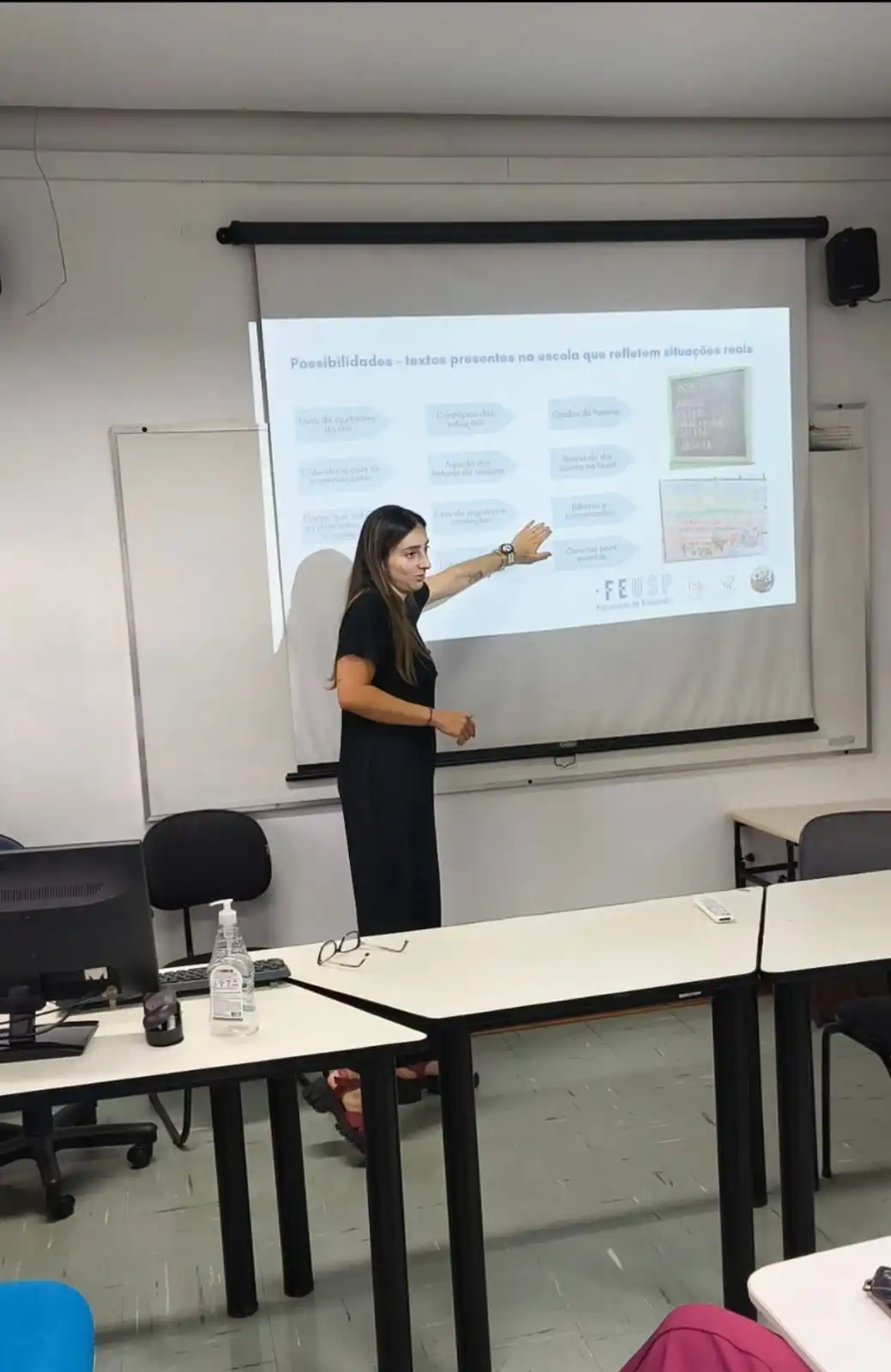 Apresentei, em parceria com a Giulianny Russo, o trabalho “Ler antes de saber ler: situações de leitura pela criança no percurso formativo de 1º e 2º ano do Compromisso Nacional Criança Alfabetizada”, compartilhando estudos e contribuições sobre a leitura como construção de sentidos.